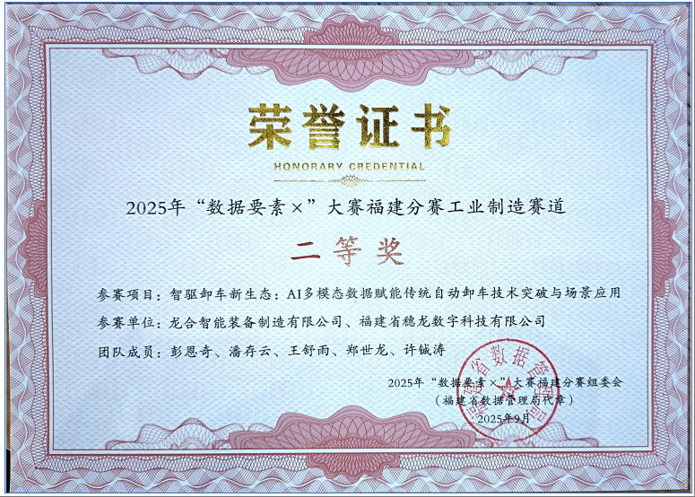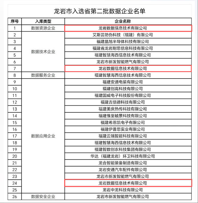 6.集团权属企业资质建设取得新突破。数产公司获评“2025年度全省数字经济核心产业创新企业(瞪羚企业)”“福建省专精特新中小企业”称号,获聘“龙岩市第三届网络安全技术支撑单位”,取得8项软件著作权。数据信息公司获选福建省第二批数据企业,顺利通过ISO环境、质量、职业健康管理三体系认证,取得两项软件著作权。穗龙公司联合龙合智能公司荣获2025年“数据要素X”大赛福建分赛工业制造赛道二等奖。